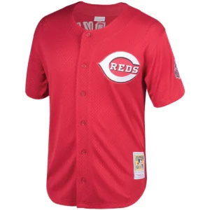 Barry Larkin Cincinnati Reds Mitchell Ness Throwback Cooperstown Mesh Batting Practice Jersey – Red