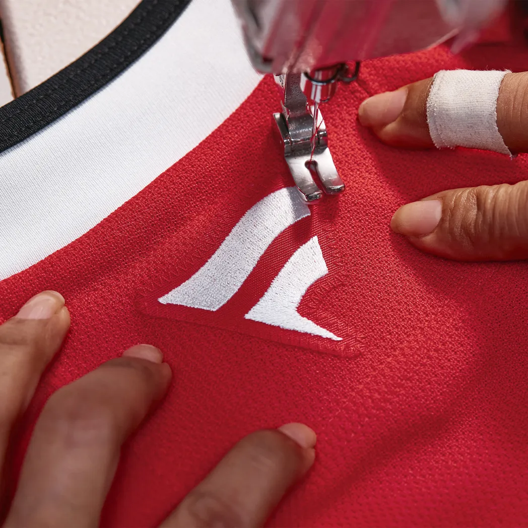 - Sewn-down tackle twill with embroidered crest and shoulder patches