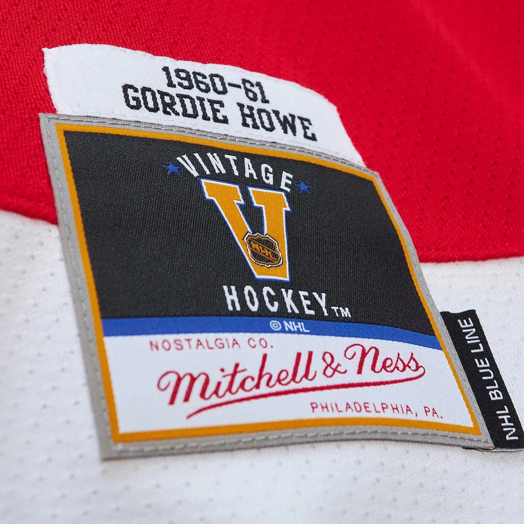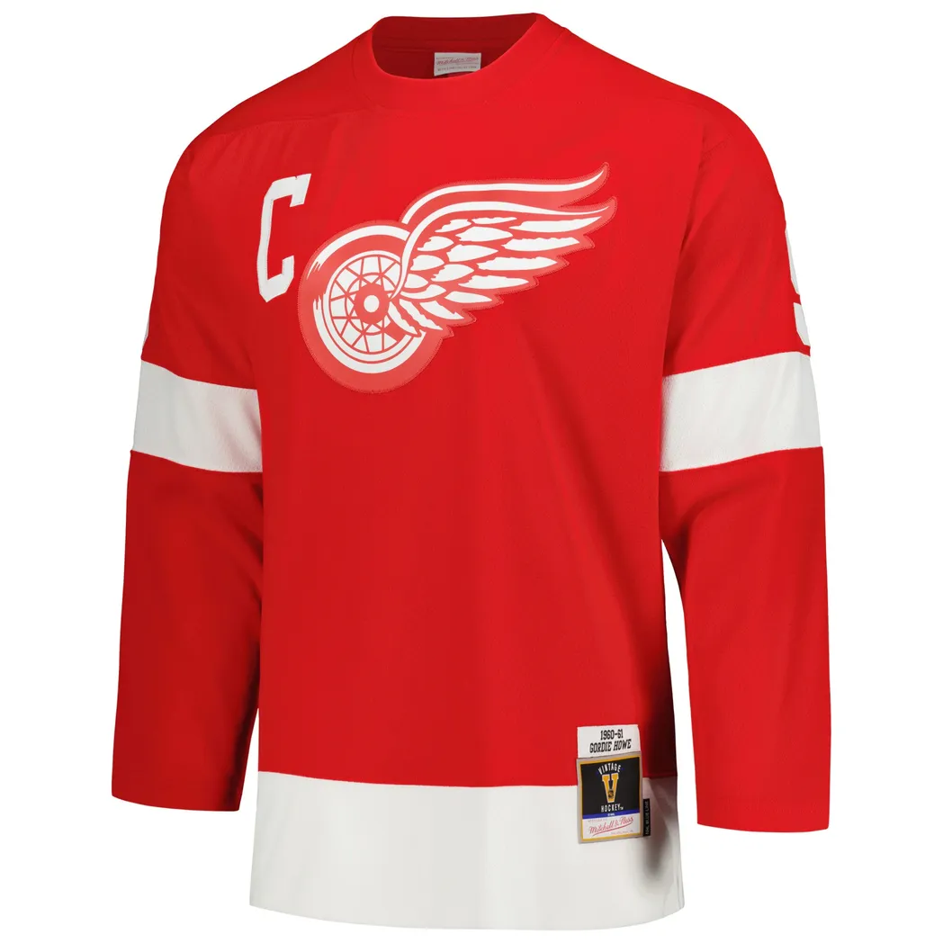 Gordie Howe Detroit Red Wings Mitchell Ness Captain Patch 1960/61 Blue Line Player Jersey – Red