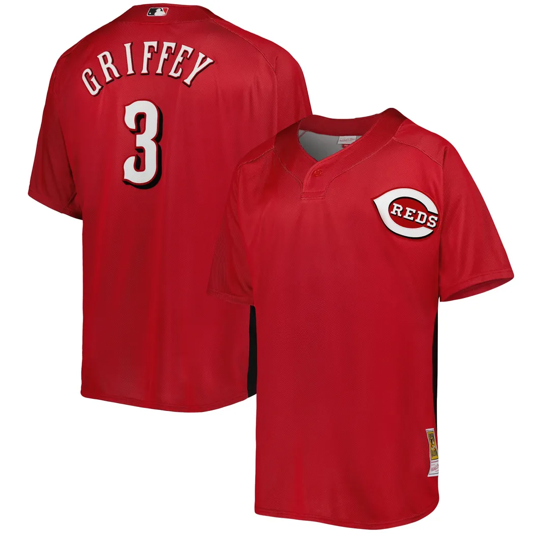 Ken Griffey Jr. Cincinnati Reds Mitchell Ness Cooperstown Collection Mesh Batting Practice Button-Up Jersey – Red