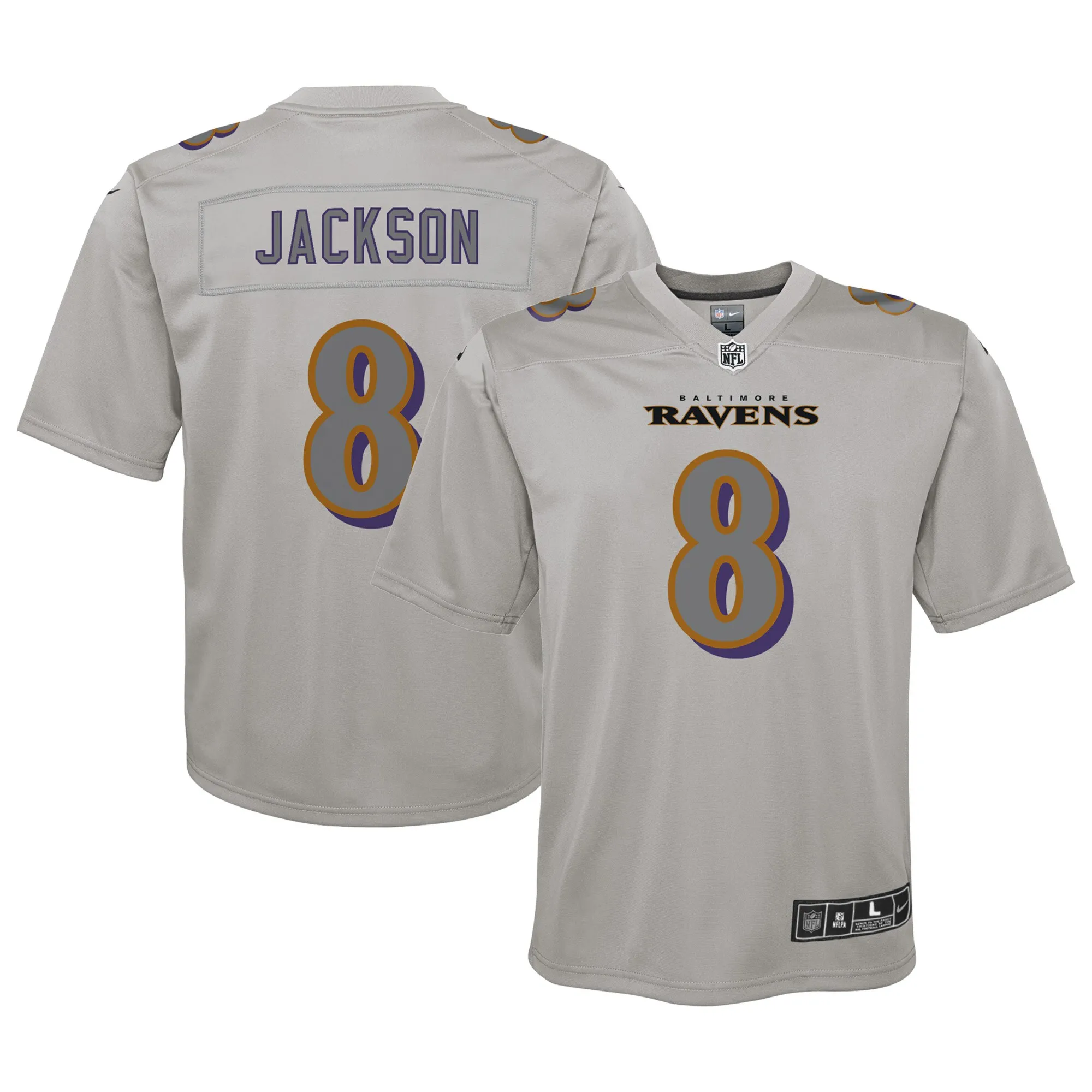 Lamar Jackson Baltimore Ravens Nike Youth Atmosphere Fashion Game Jersey – Gray