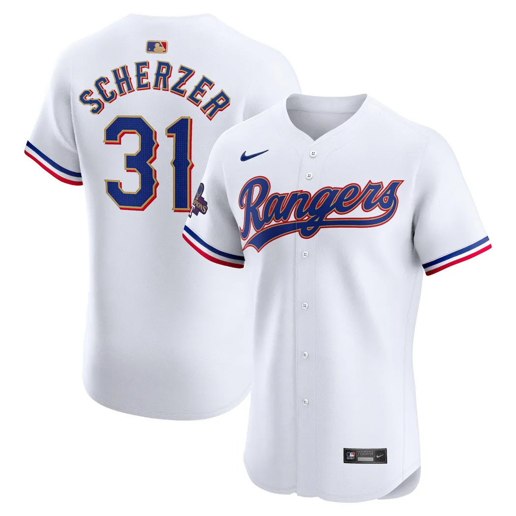 Max Scherzer Texas Rangers Nike 2024 Gold Collection Elite Player Jersey- White