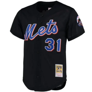 Mike Piazza New York Mets Mitchell Ness Cooperstown Collection Mesh Batting Practice Button-Up Jersey – Black
