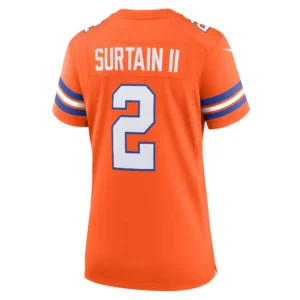 Patrick Surtain II Denver Broncos Nike Women’s Mile High Collection 1977 Throwback Player Game Jersey – Orange