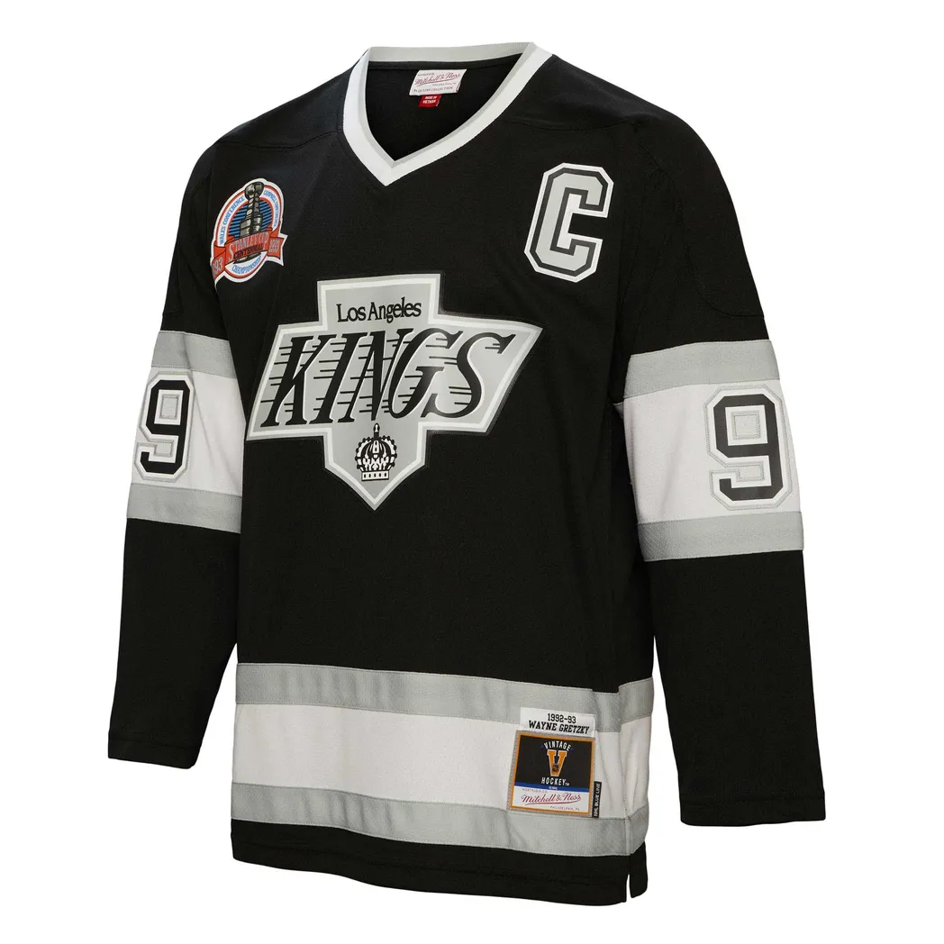 Wayne Gretzky Los Angeles Kings Mitchell Ness Captain Patch 1992/93 Blue Line Player Jersey – Black