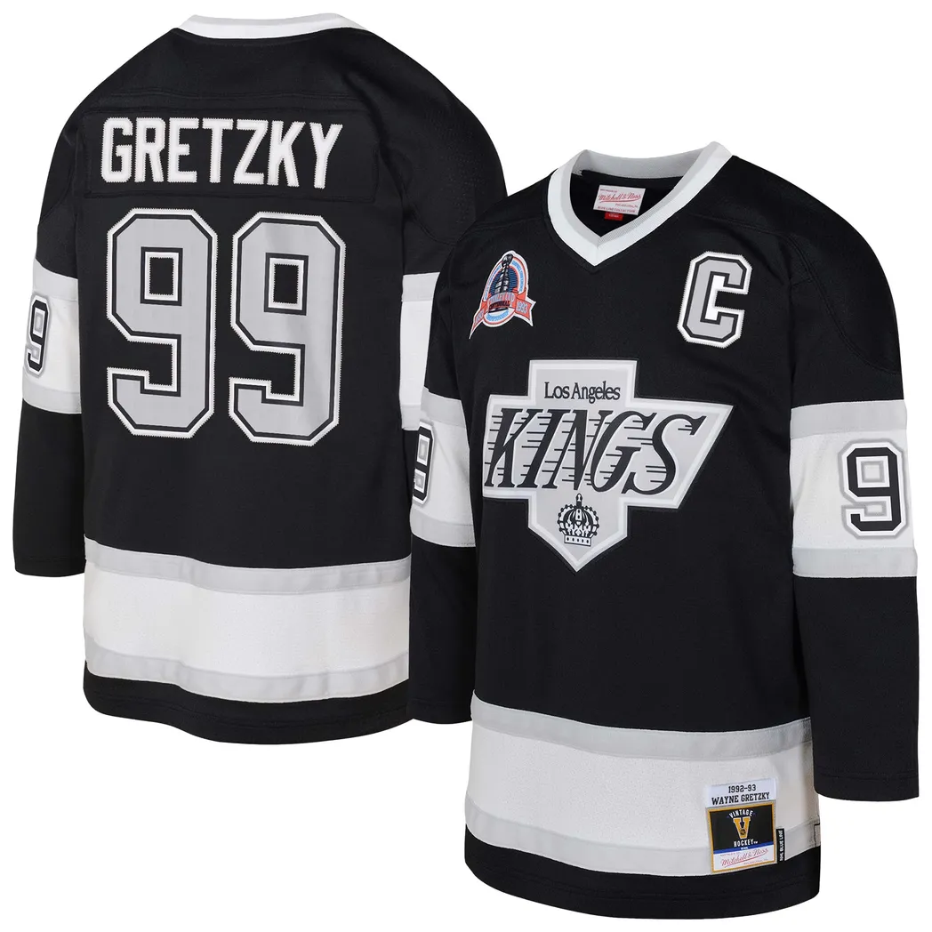 Wayne Gretzky Los Angeles Kings Mitchell Ness Youth 1992/93 Captain Patch Blue Line Player Jersey – Black